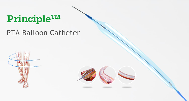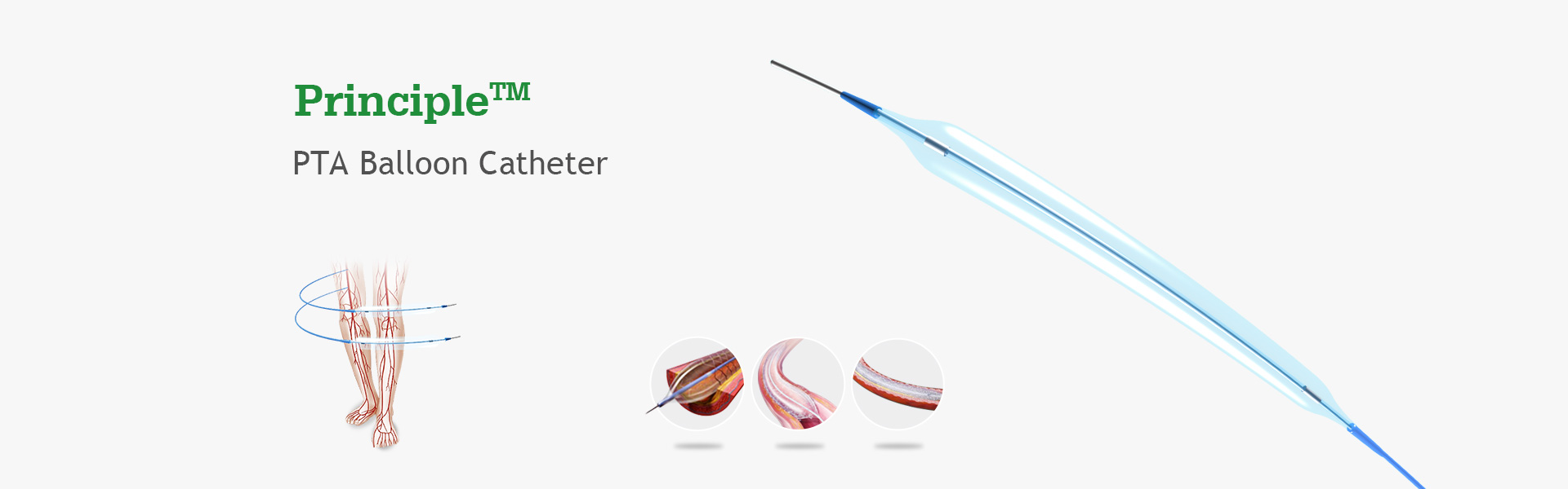 PrincipleTM PTA balloon catheter, intended to be used for the treatment of stenotic or occlusive lesions in various arteries, excluding coronary, cervical and cerebral vessels, to improve blood flow. It is also indicated for stent post-dilatation in the peripheral vasculature.